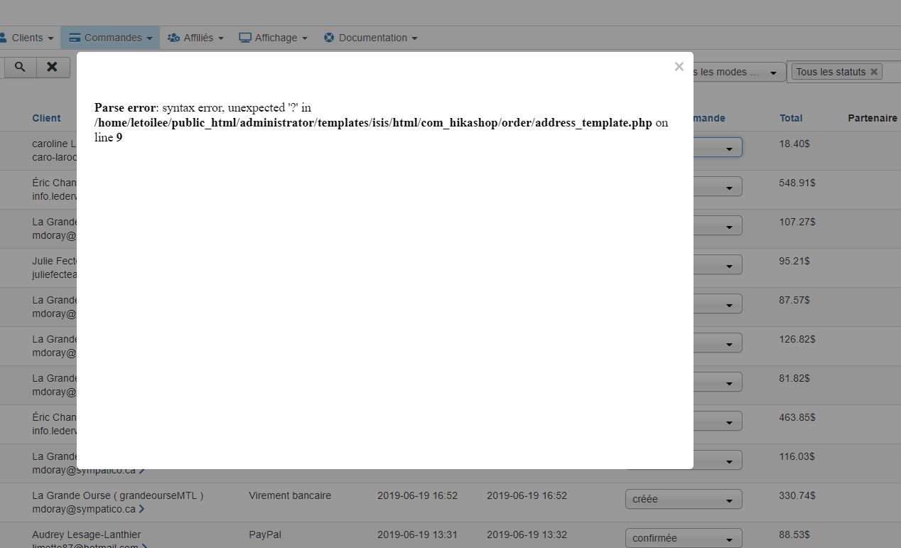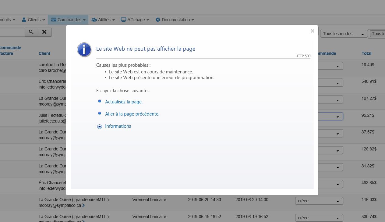 Cela indique qu'il y a une erreur PHP lors du processing de la page.