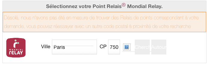 Il semblerait que le service de MondialRelay pour la sélection de point relai soit inopérant en version 3.0