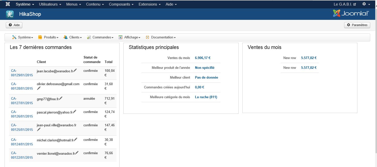 Bonjour et merci pour votre réponse, Mais bizarrement le pavé dernière commande n'est pas bon car j'ai des commandes du mois de Janvier 2016 qui n'apparaissent pas (c'est l'ancien système de numérotation, actuellement mes commandes commencent par Kxxxx ) et le pavé statistique correspond a la dernier sélection de borne de date que j'ai fait dans l'ancienne version.