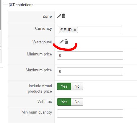 - créez deux méthodes de livraison, une sans entrepôt, et une avec cet entrepôt.