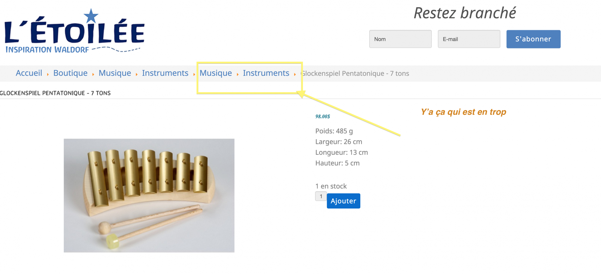 Lorsqu'on arrive sur la page d'un produit, il y a un truc bizarre dans le fil d'Arianne. Comme un dédoublement de catégories.