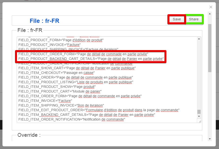 vous verez alors la liste de vos custom fields relatif à vos produits, cliquez sur les noms de ces custom fields, et faites le point sur la parti