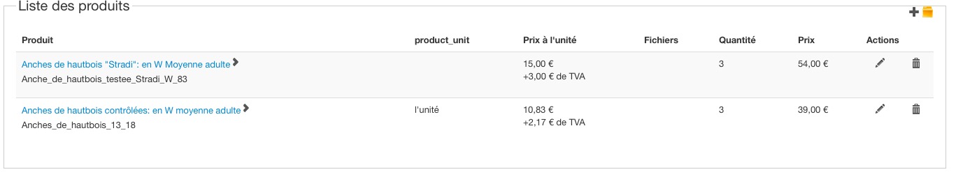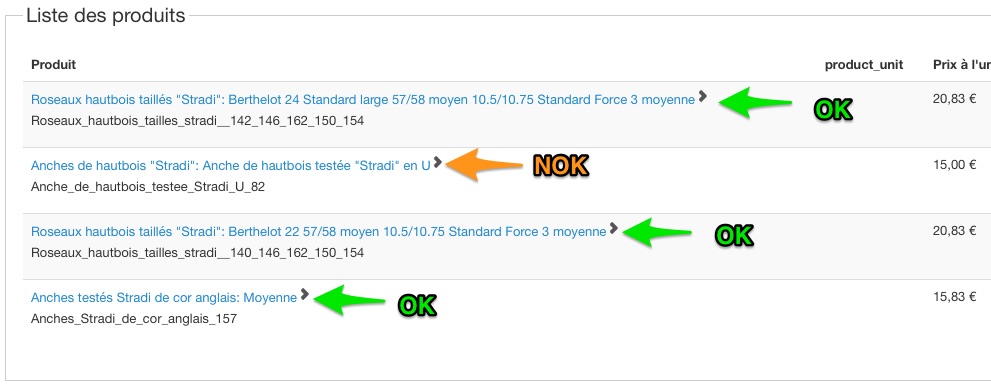 Sur la vue 2 : le nom du même article "anches de hautbois Stradi..." est incomplet, sa 2e variante n'apparaît pas...