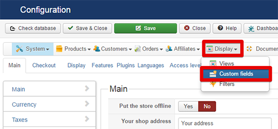 - Allez sur Components => HikaShop => Configuration