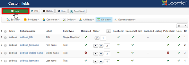 - cliquez sur "New" pour creez votre custom field