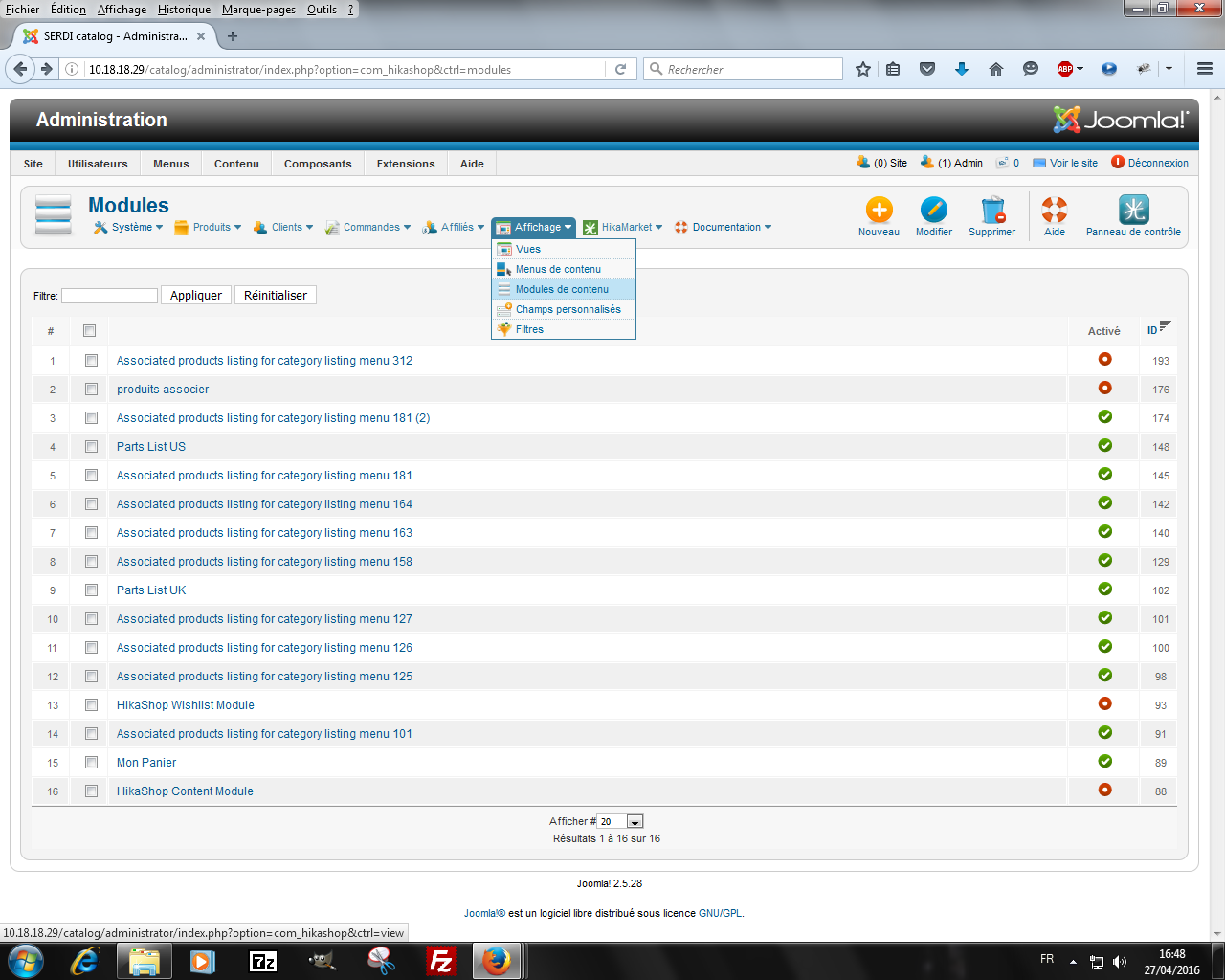 J'ai remarque que la recherche de pièces détacher sur notre site ne marchais plus, de puis la migration hikashop je n'arrive pas a trouver le module de contenu sur la nouvelle version alors qu'elle y étais dans l’ancienne ou se trouve ce module