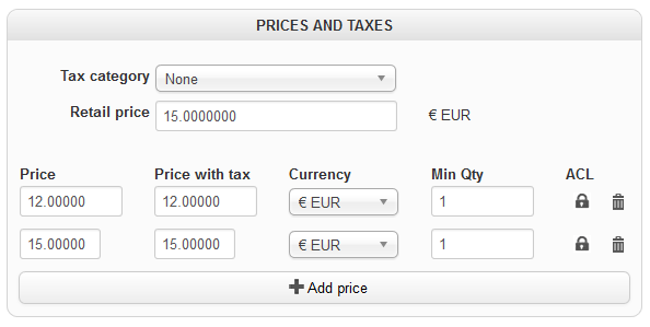 Pour le bloc "Prices and taxes"