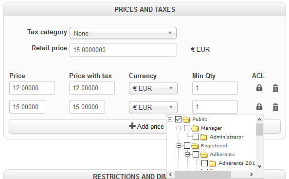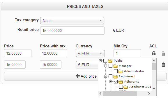 J'ai créé un produit avec deux tarifications, l'un pour le grand public, l'autre pour les adhérents (site associatif).