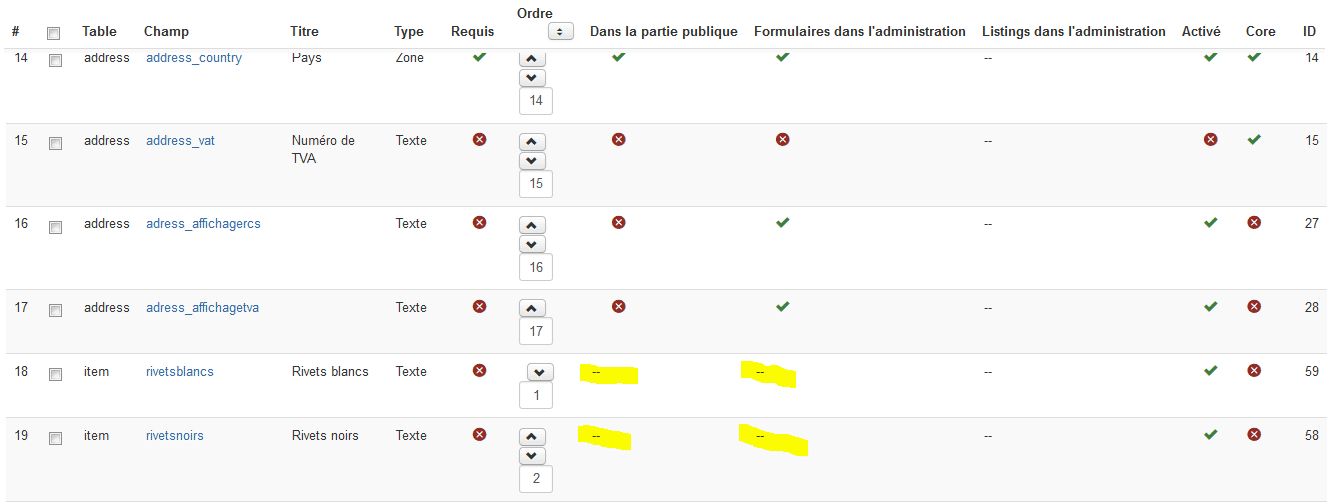 Seule ombre, ces champs perso devraient apparaitre sur Bon de commande, et Facture car toutes les options d'affichage sont à OUI... Mais là par contre j'ai des overrides... Le problème doit venir de mon côté