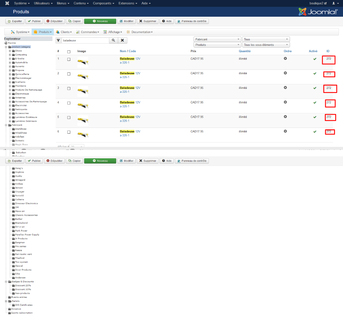 Et si un produit se trouve dans de multiple catégories, il va être listé autant de fois qu'il est disponible dans une sous-catégorie.