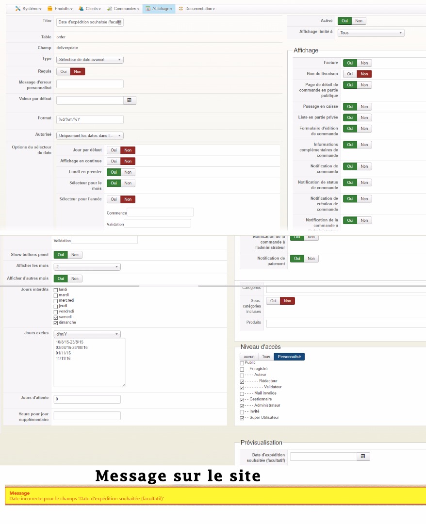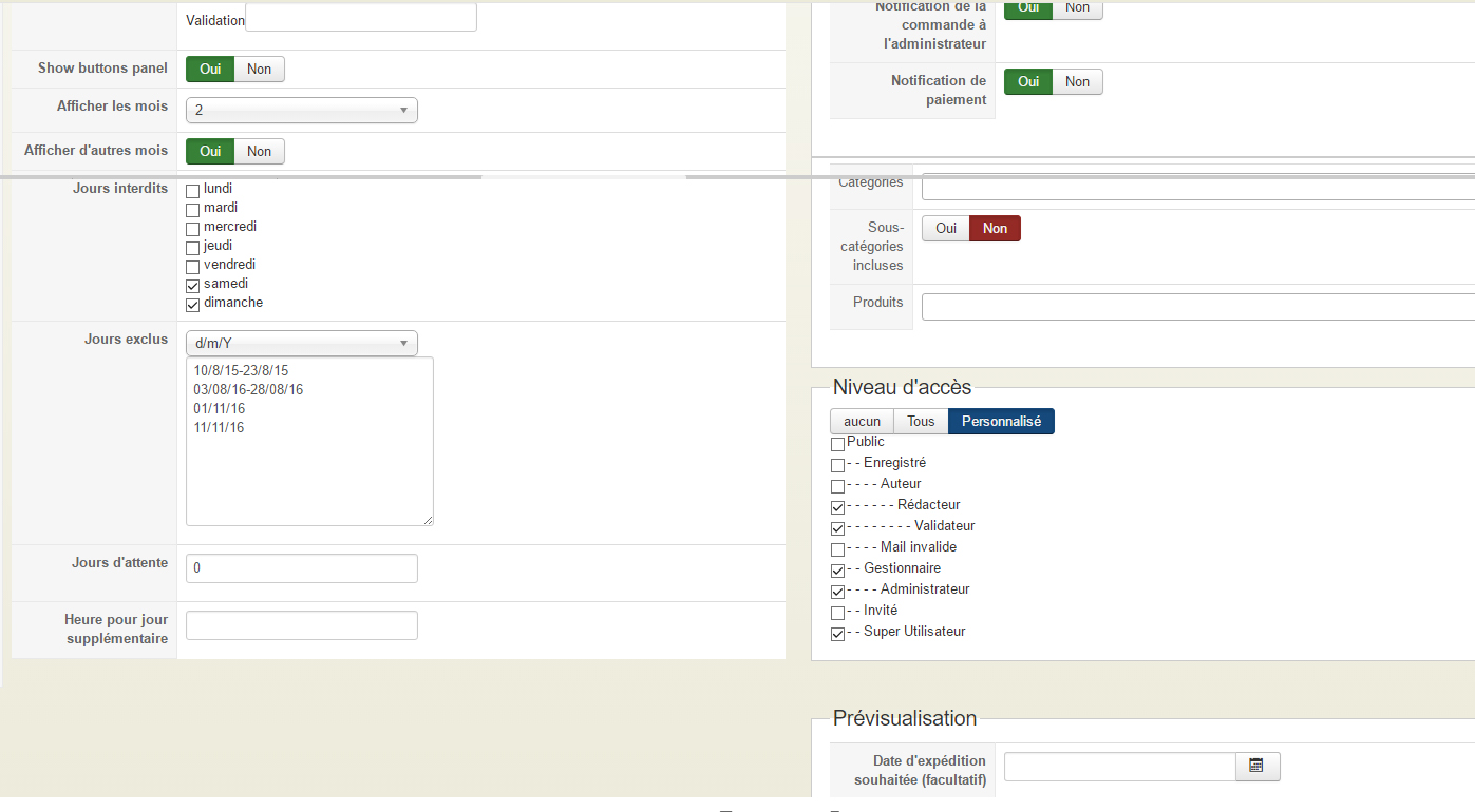 Bonjour, voilà les screen ....j'ai autorisé seuls certaines catégorie de visiteurs pour ne pas afficher le calendrier sur le site aux clients.