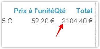 Espace entre quantité et prix sur la facture