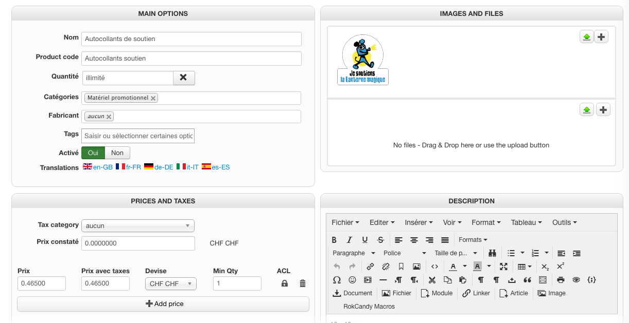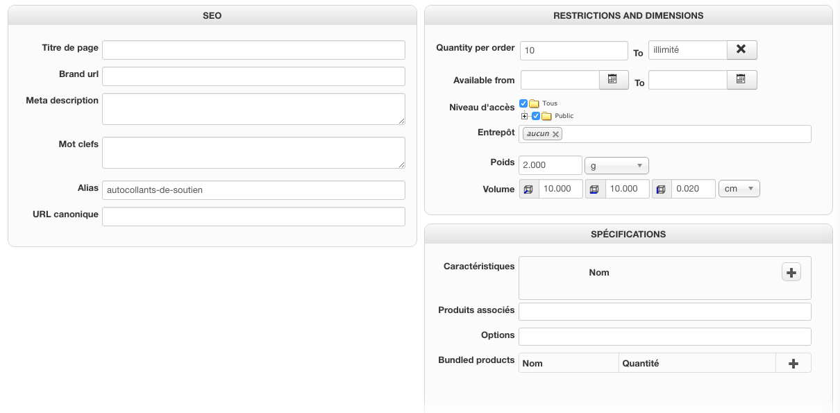 3 - J'ai téléchargé la dernière version de HikaShop 3.0.0 qui ne corrige malheureusement pas le problème rencontré. Je vous envoie donc mes captures d'écran (celle de la configuration produit + celles de la configuration d'un produit).
