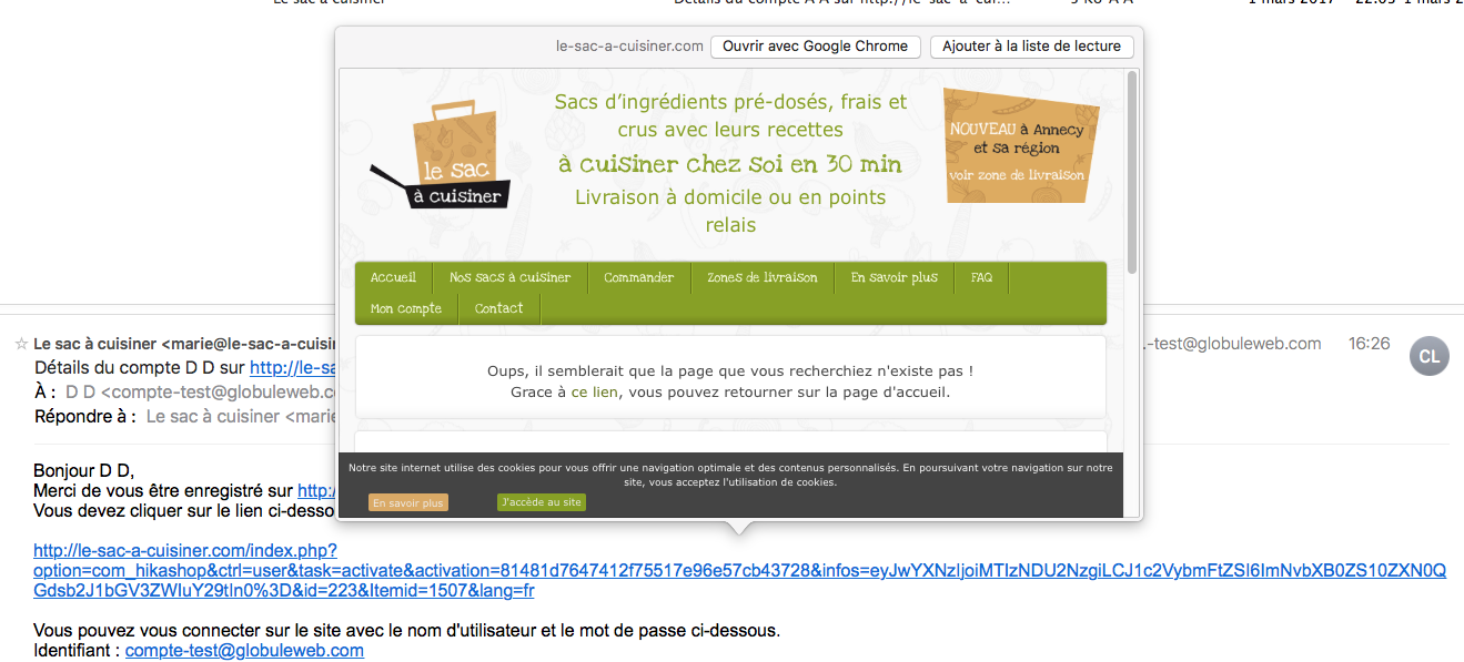 2 - lorsque le client reçoit le lien pour activer son compte, il est dirigé vers une page 404