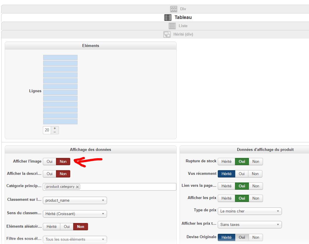 Malgré le paramétrage, les images s'affichent. Par contre en mode div, le switch contrôle bien l'affichage des image. Mais pas en mode tableau.