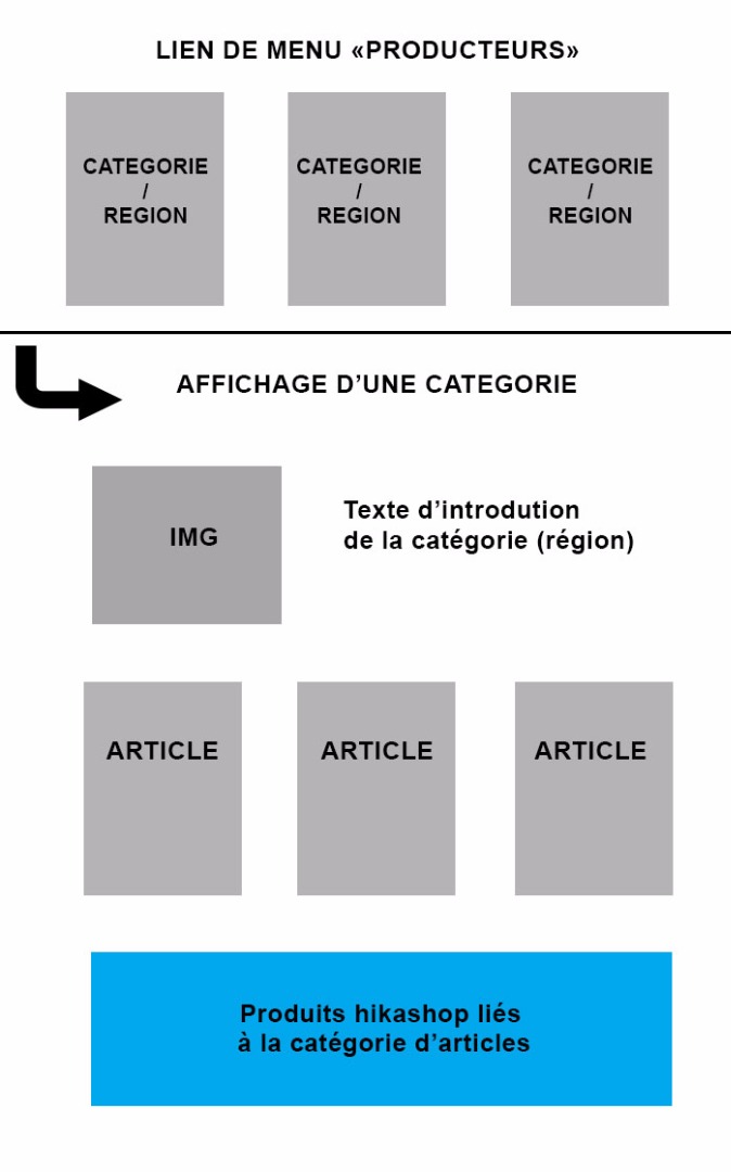 Mon client souhaite qu'à l'étape 2 (affichage d'une catégorie / région, de sa description, et des articles liés) apparaissent les produits Hikashop en rapport avec cette région.