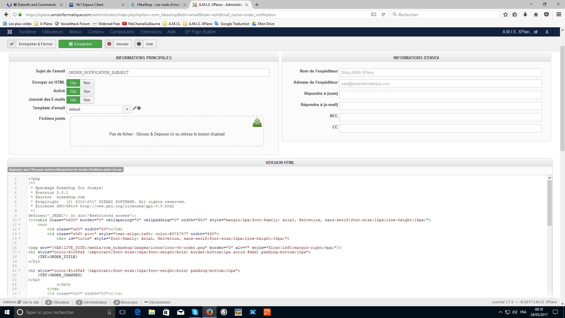 Il est ainsi possible d'avoir une adresse email spécifique pour les commandes et une autre pour les validations de compte utilisateur envoyés par HikaShop.