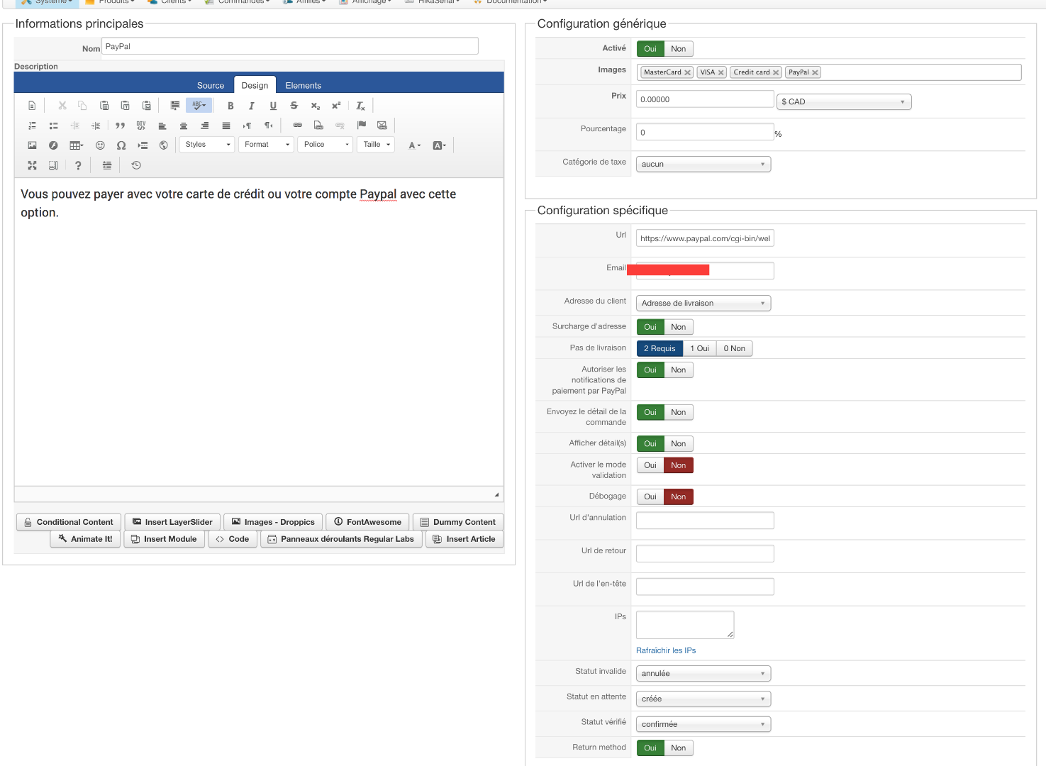 J'ai configuré le plugin Paypal et procédé à ma première transaction et il y a un problème.