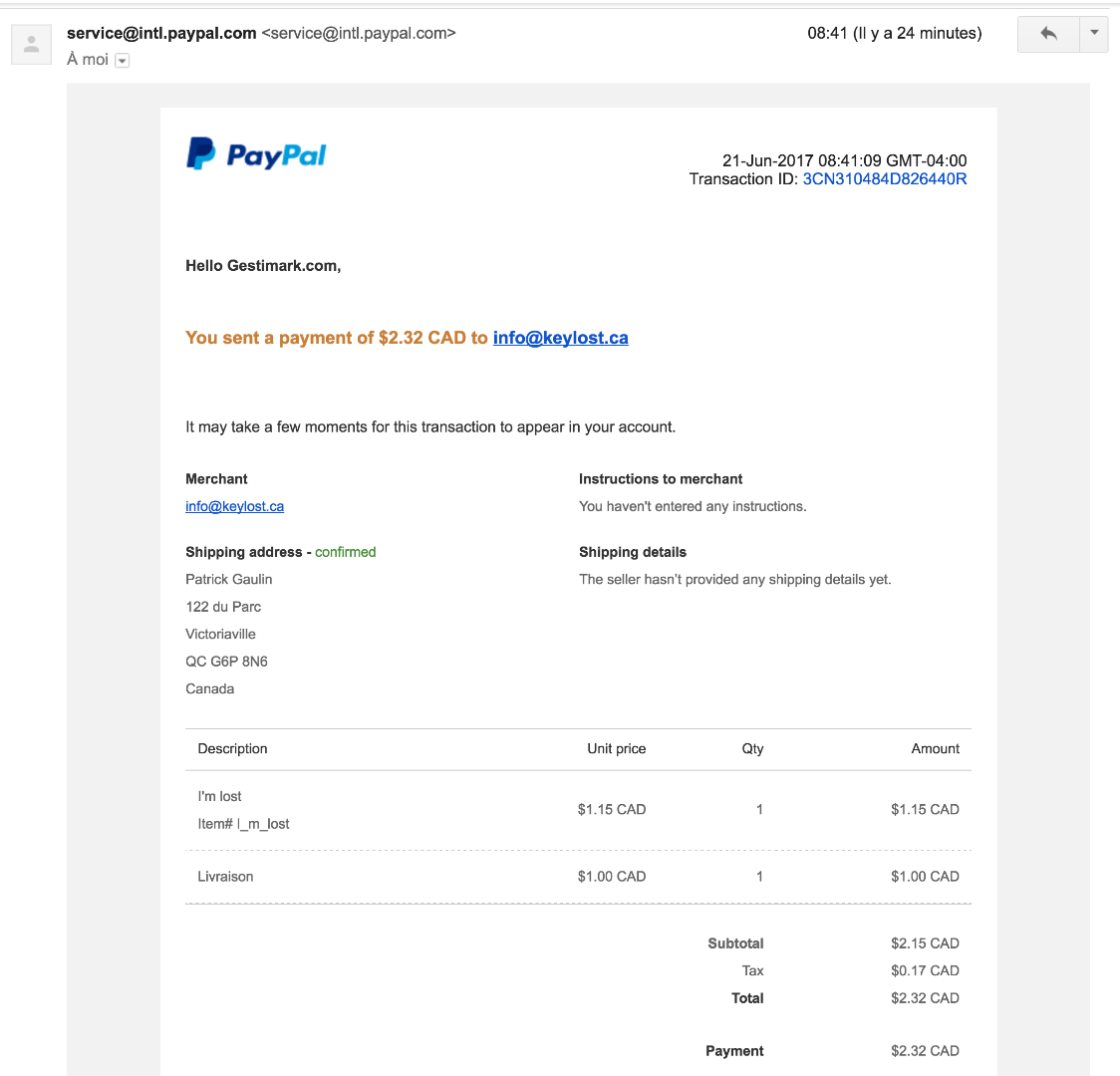 L'acheteur a reçu la confirmation de paiement Paypal et le courriel de création de commande, mais le paiement n'est pas passé dans le compte paypal et la commande est classée comme "Pas payé". Le montant a été prélevé dans le compte Paypal de l'acheteur.