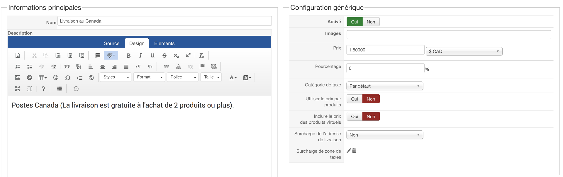 J’ai configuré la chose et ça ne fonctionne pas. Ma méthode de livraison n’apparaît simplement pas lorque le montant est > 0$. Dans les options du plugin de livraison, lorsque je sauvegarde, la case « Prix maximum », même si je la laisse vide la valeur 0 s’ajoute toute seule.