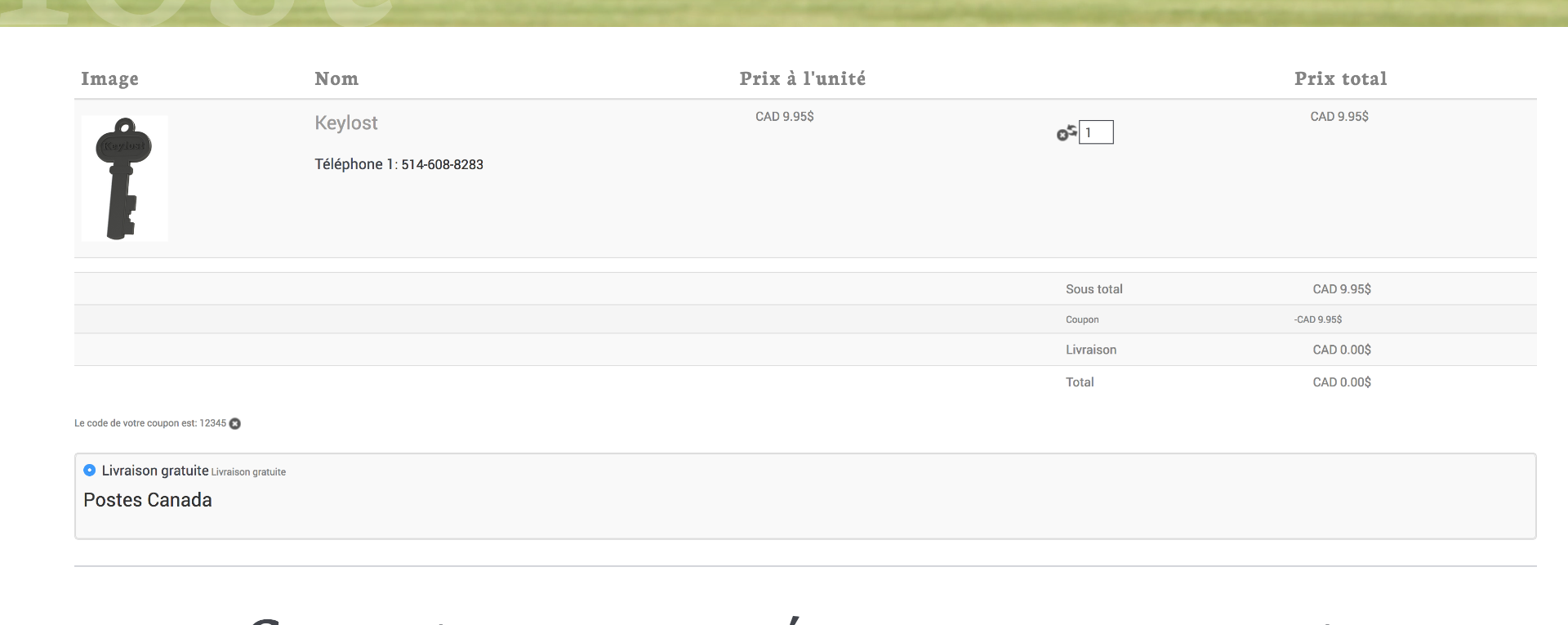 J'utilise le coupon 12345 pour mettre la commande à zéro 0$.
