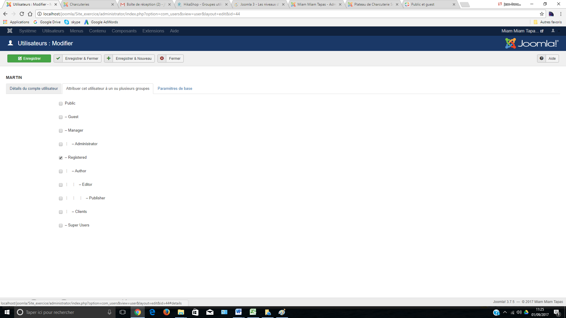 J'ai crée un groupe client dans Joomla rattaché à la catégorie registered