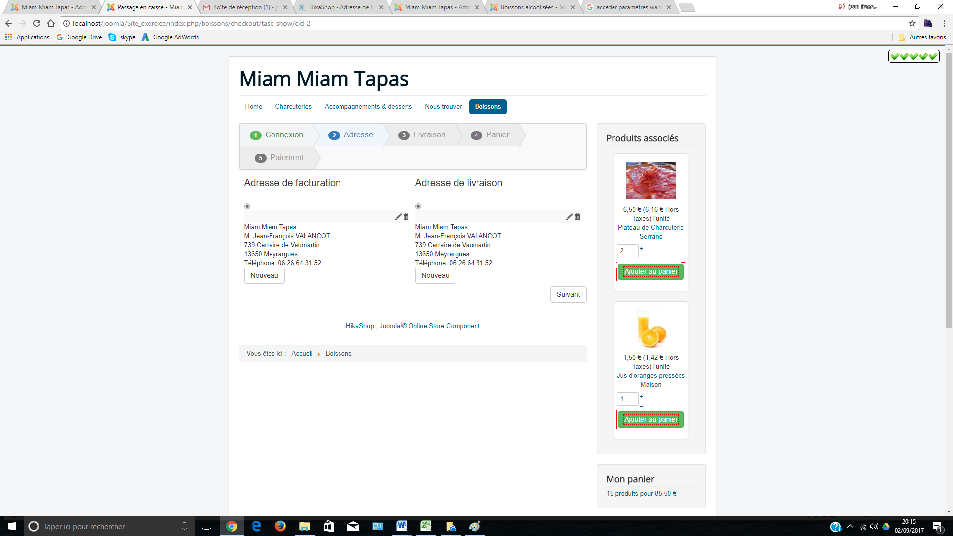 Pour éviter cela, il faut créer une nouvelle adresse et ainsi avoir deux adresses, et vous pouvez ainsi sélectionner des adresses différentes entre la livraison et la facturation.