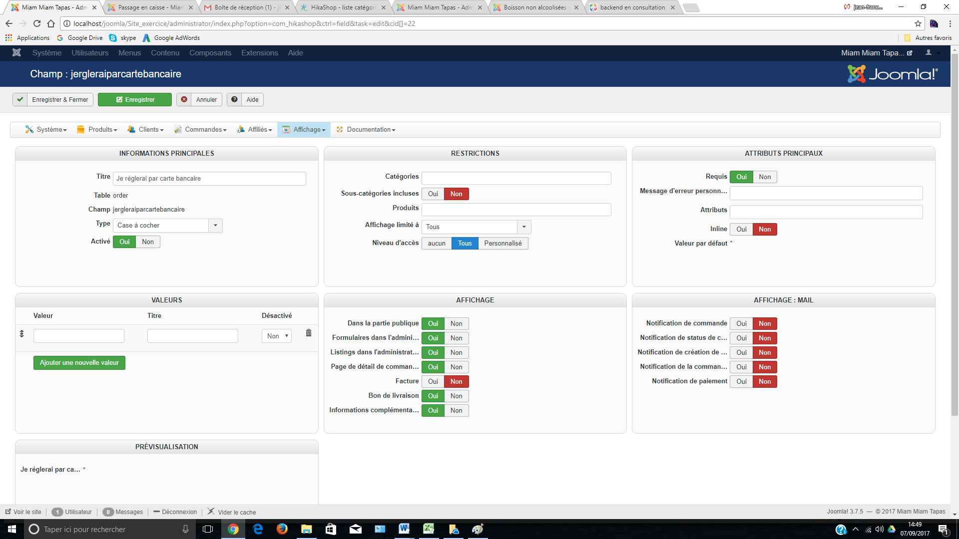 2) Ce champs personnalisé que j'ai rattaché à la base commandes et qui apparaît dans "les champs" du chemin de commande pourraît-il apparaître sur la page de choix du règlement (dans mon cas c'est un paiement à la livraison).