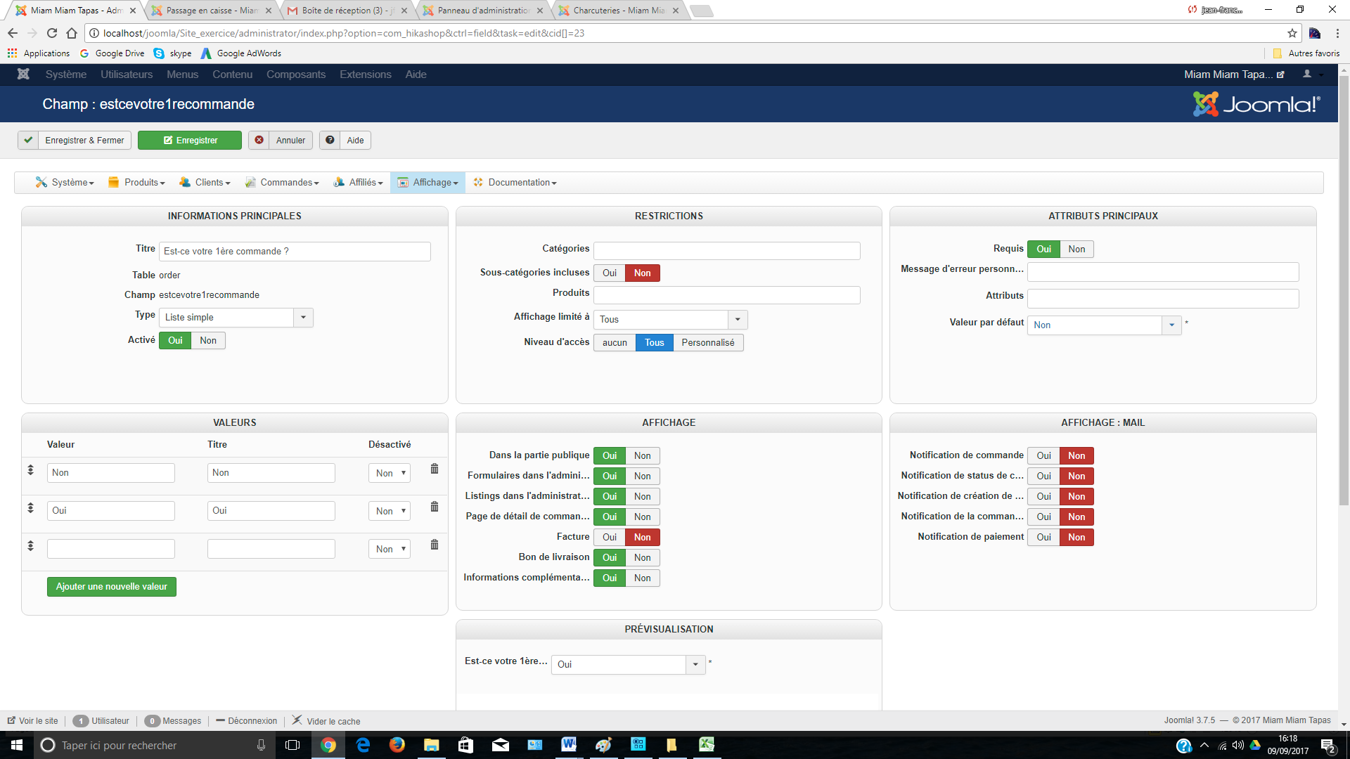 La valeur par défaut "non" n'est pas mise automatiquement dans le champ personnalisé, est-ce votre 1ère commande.