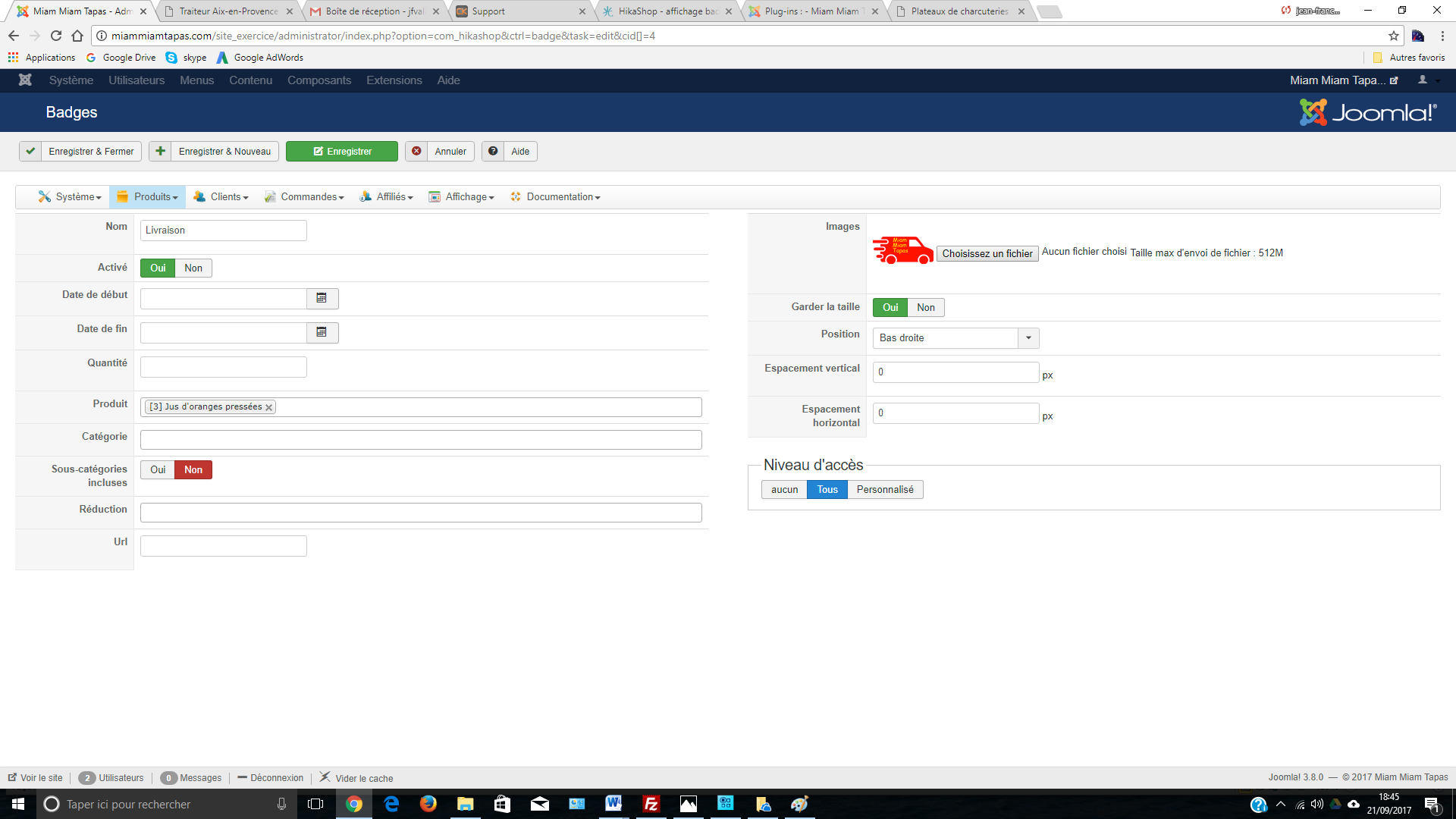 Pouvez-vous être plus précis. Où dois-je aller dans joomla pour paramétrer l'affichage des badges ou des produits associés ?