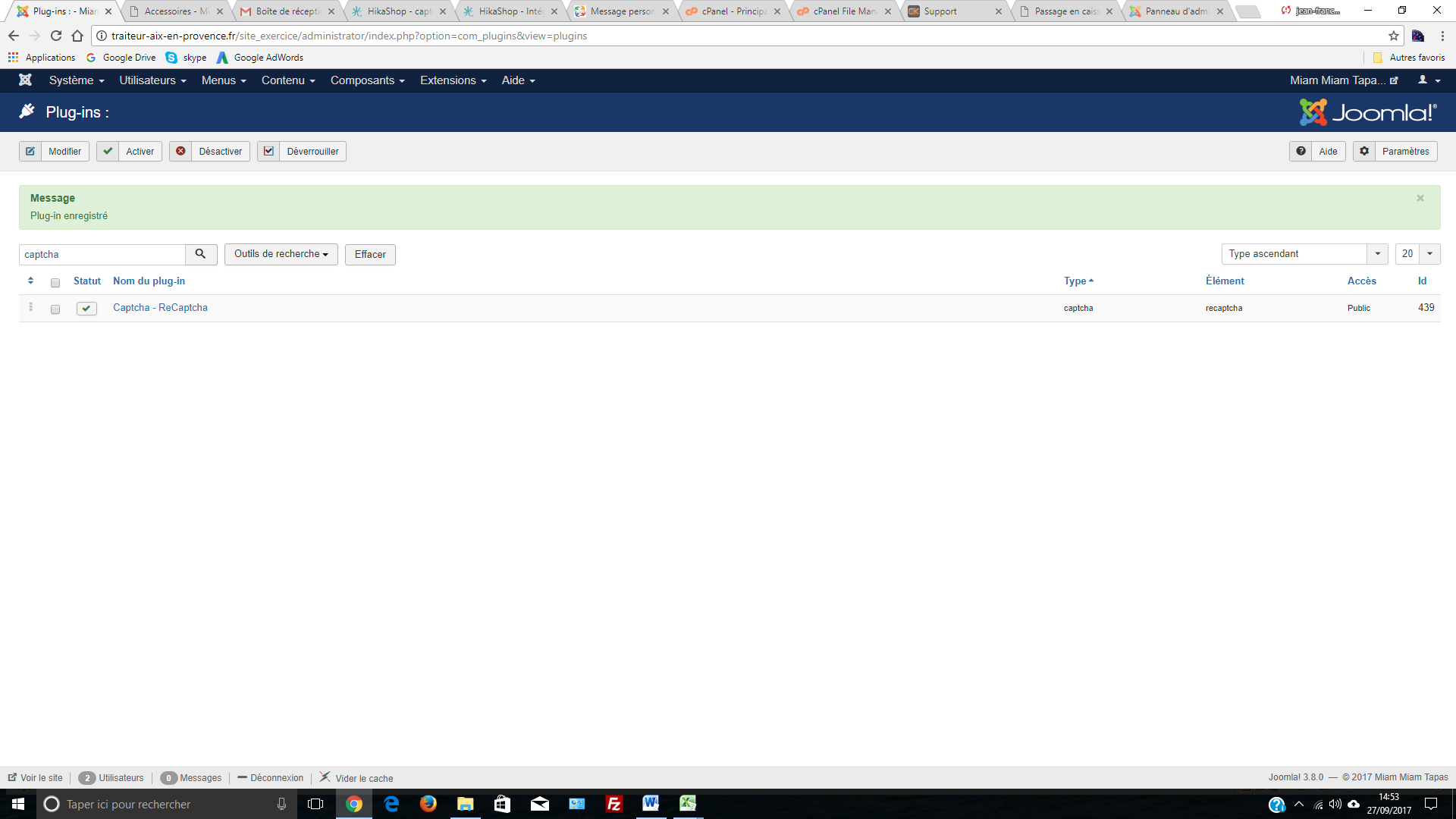 Je n'ai pas d'autre plug in que lui déjà installé. Les codes récupérés sur le site recaptcha font fonctionner parfaitement la fiche contact.