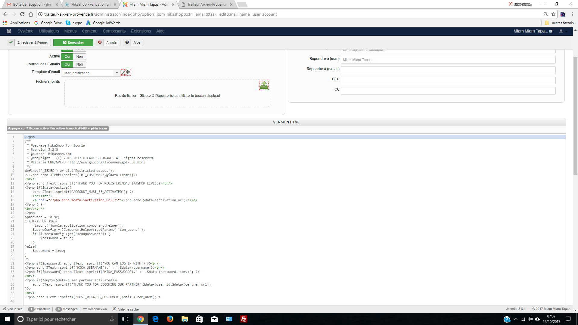 -- Joomla version -- : 3.8.0