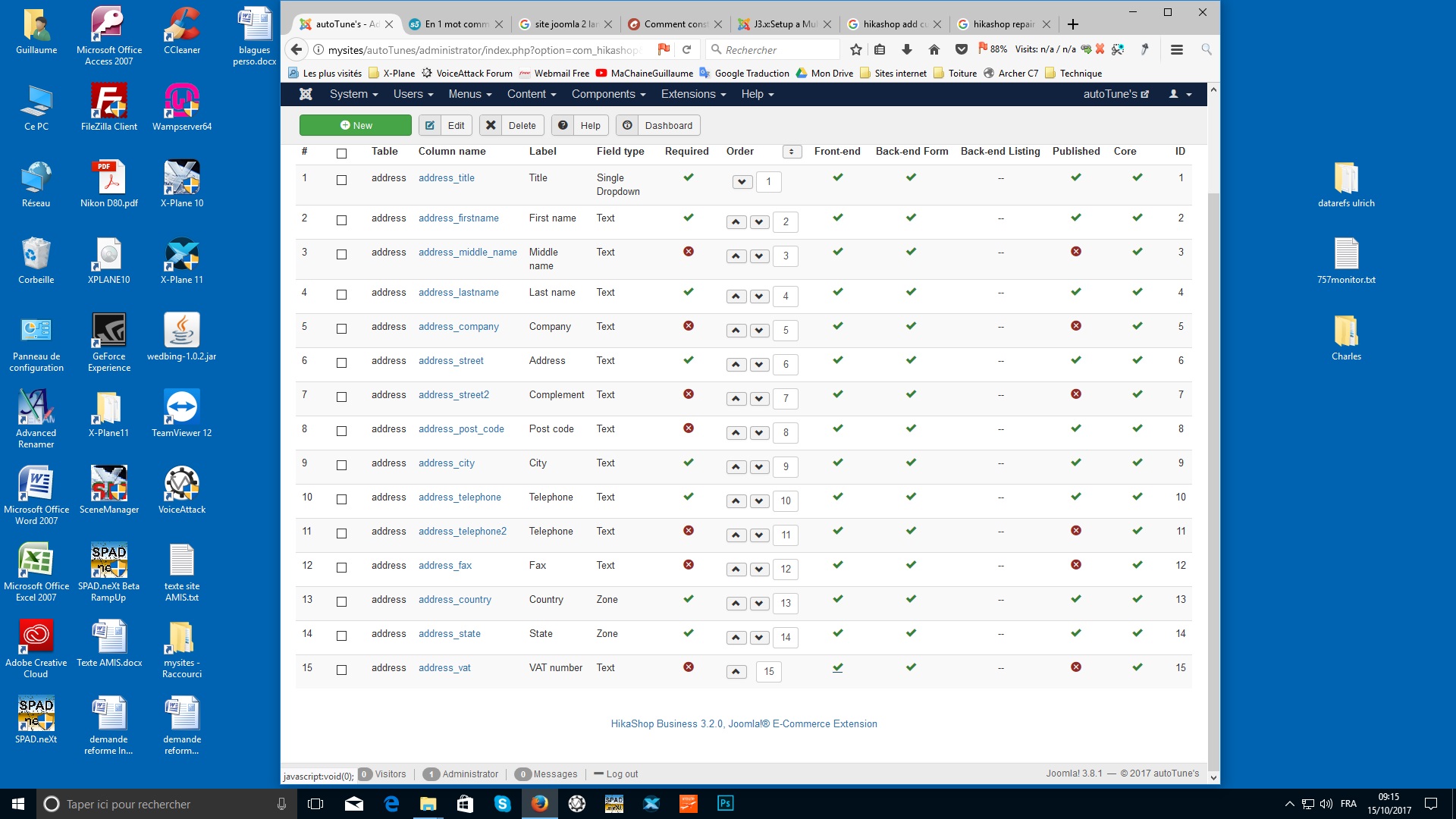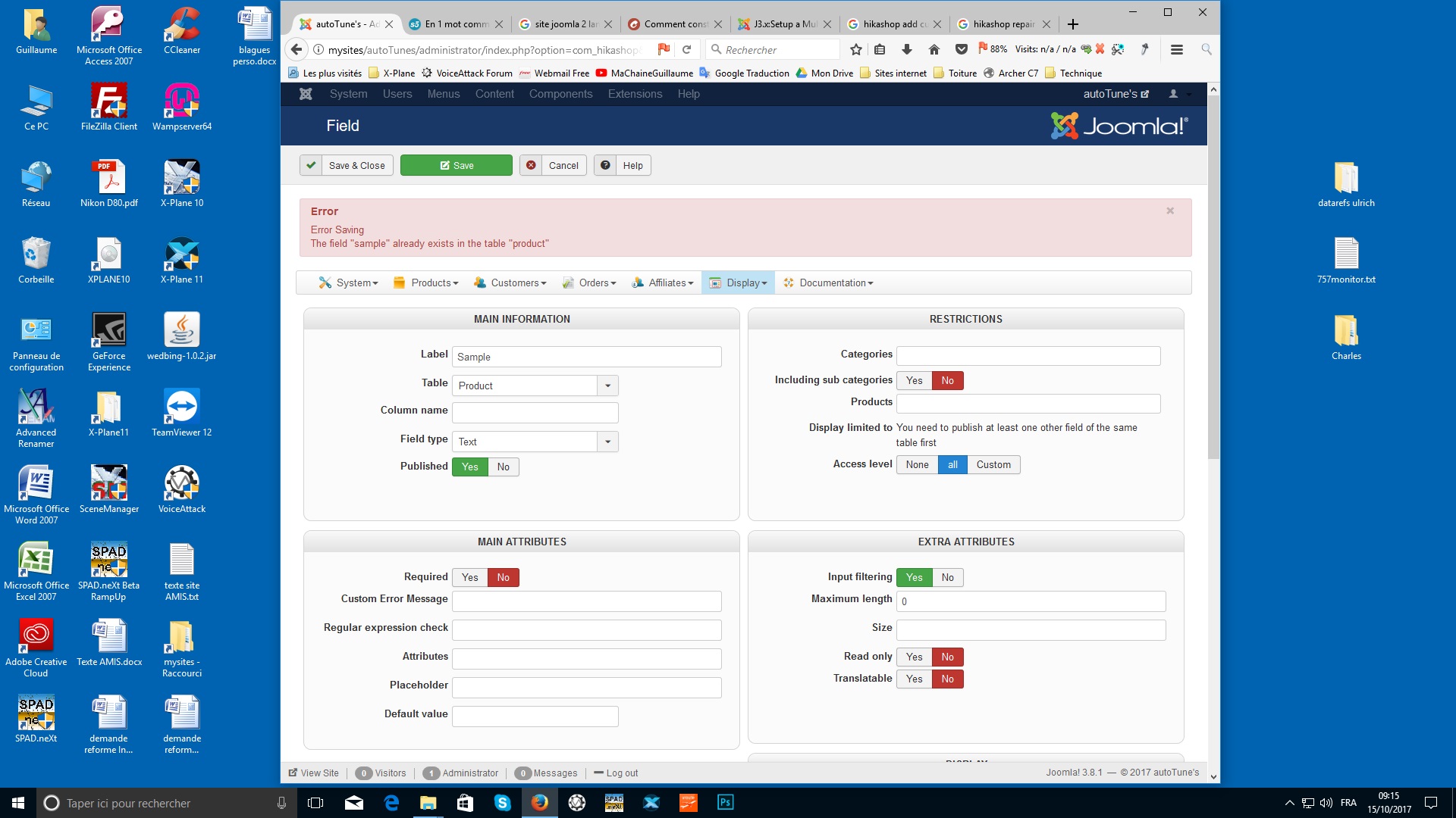 je fais des tests avec des customs fields. Une fois un champ supprimer, il est impossible de créer le même. Hikashop dit qu'il existe dans la table.
