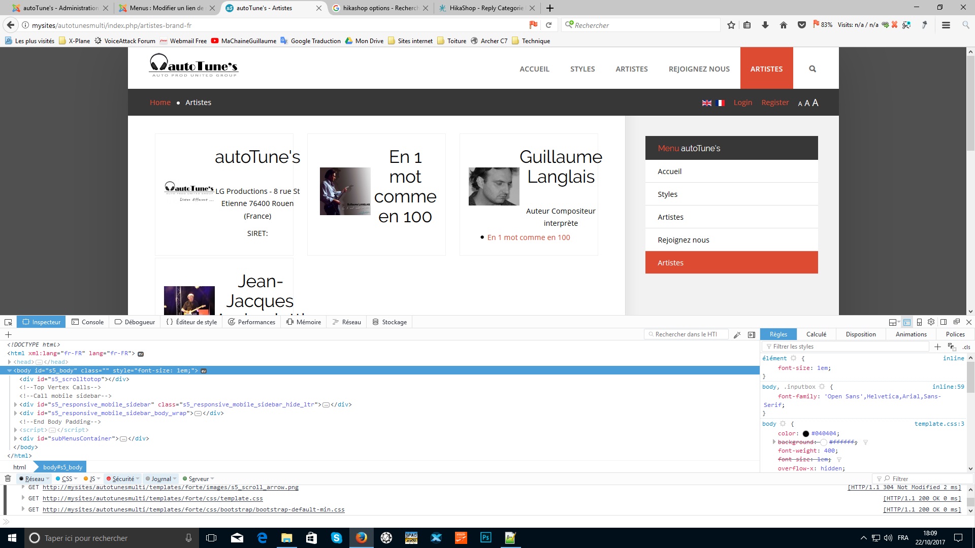 J'ai fait un petit tour sur votre site, et j'oberseve que vous avez plusieurs fichier css qui commande la taille de votre police, notamment custom.css, thirdparty.css(plugin d'affichage), template.css