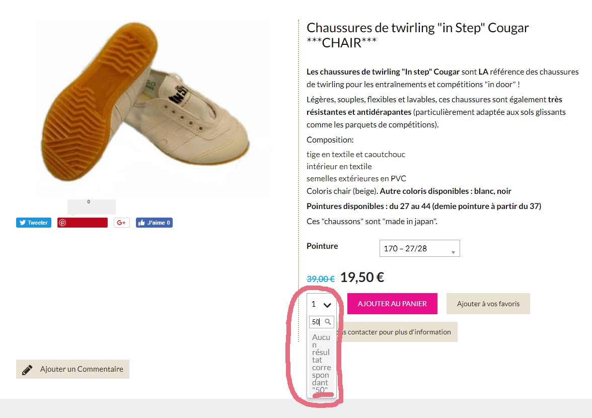 mais le problème ne vient pas de là. Le problème est que je ne peux pas commander 30 items d'un même produit en utilisant le champ quantité et je voudrais pouvoir en augmenter la capacité.