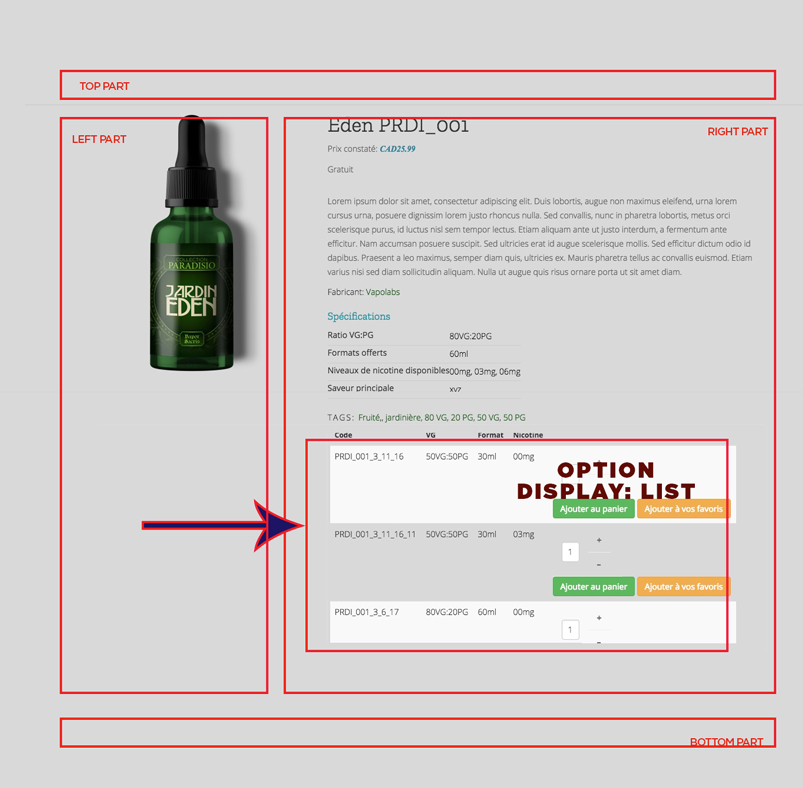 Dans votre code, identifiez le code responsable de l'affichage des variantes :