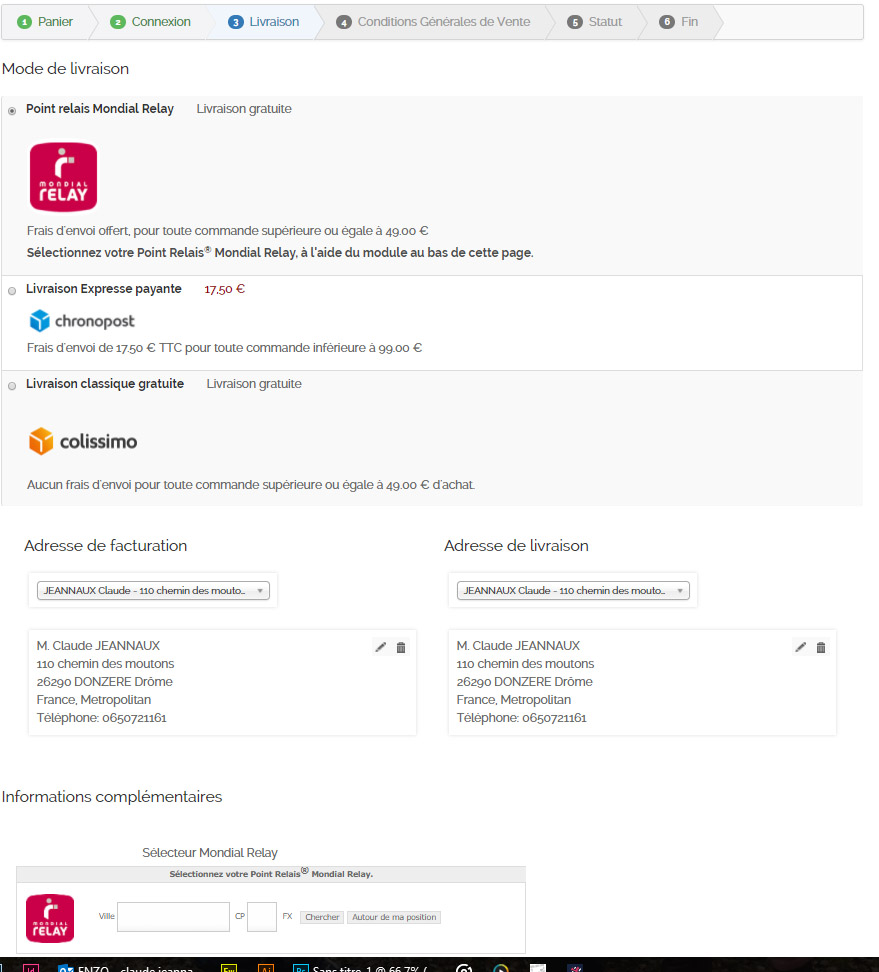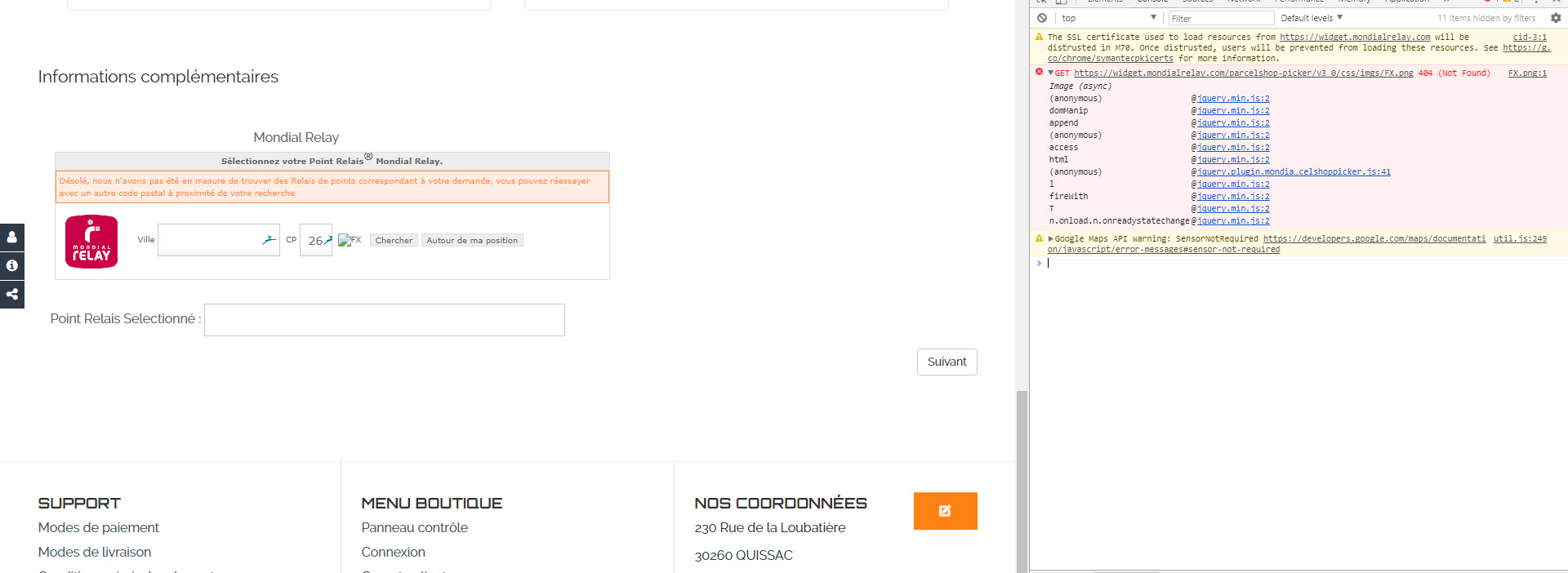 voir les captures, sur la page du Workflow, avec le module Mondial Relay, 3 erreurs supplémentaires (voir captures)