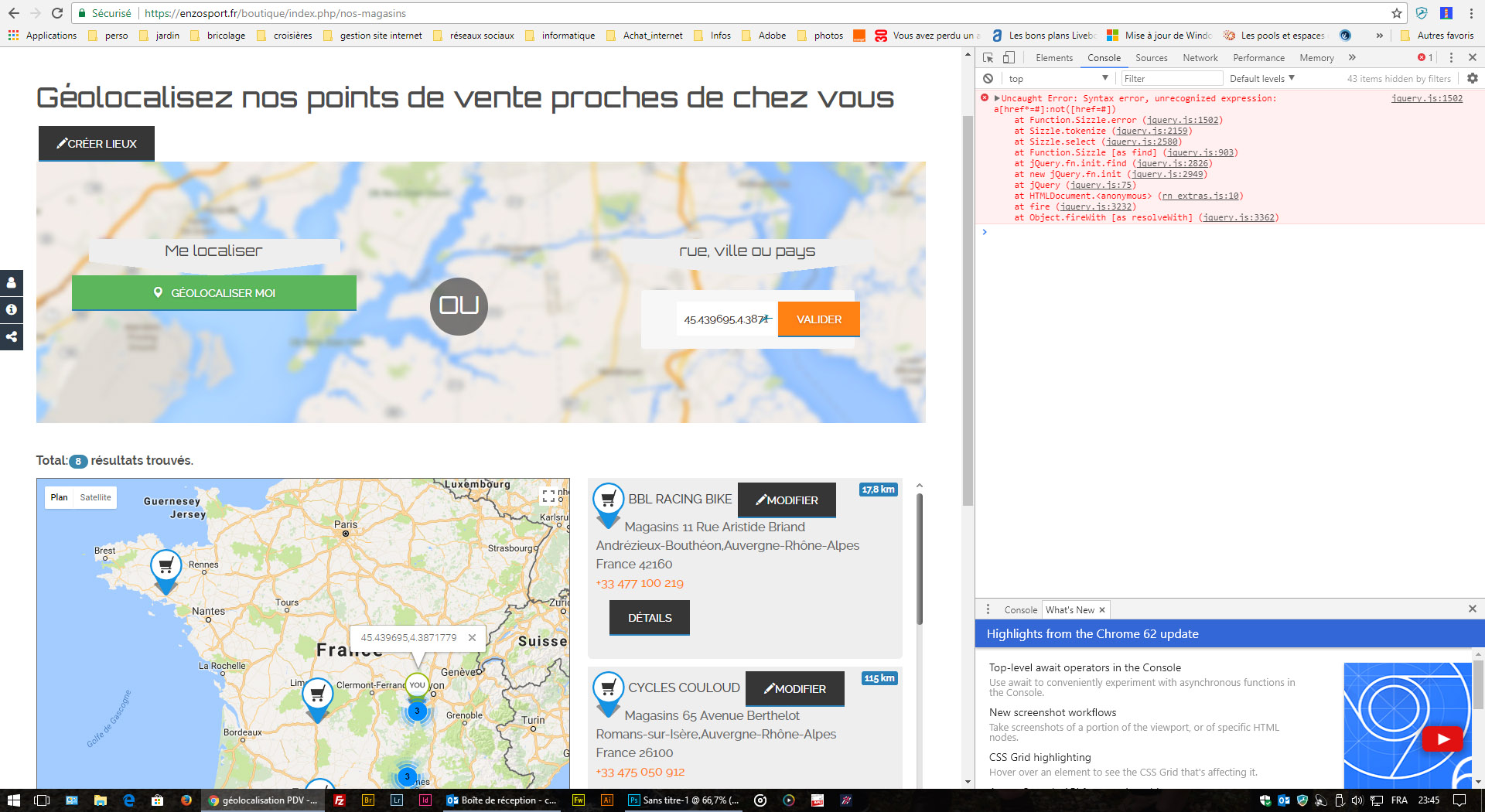 L'API Google fonctionne déjà sur une page du site avec l'application MyMapsLocation (voir capture)