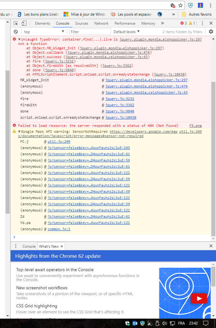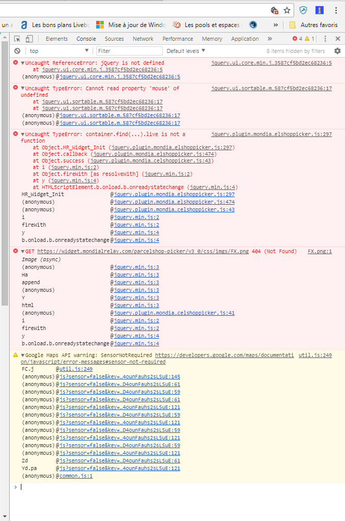 Avec la console JS je relève la même erreur JS sur toutes les pages :