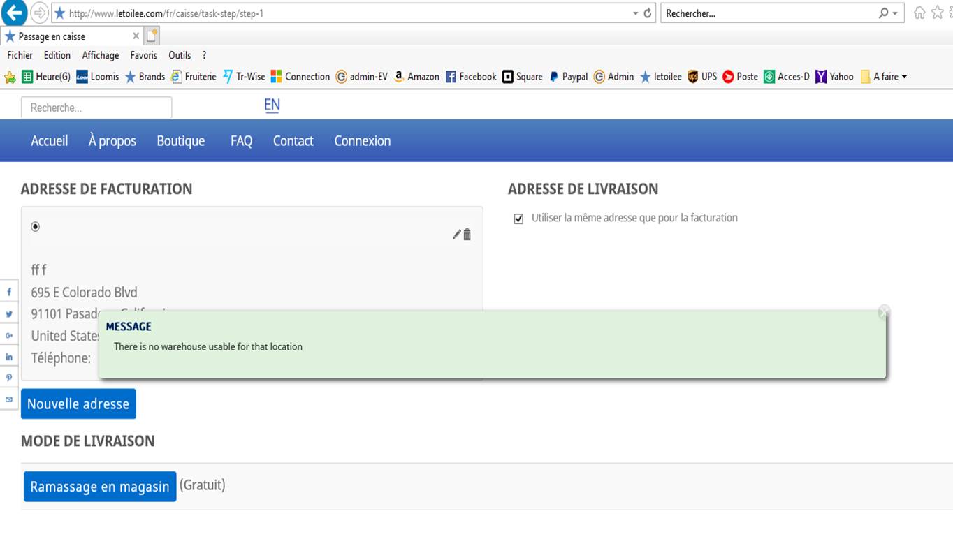 Lorsque les clients canadien font une commande, pas de problème, le plugin de Canada calcule les frais de transport facilement. Mais lorsqu'un client des Etats-Unis mets son adresse, le message suivant apparaît «There is no warehouse usable for that location» et le plugin Canada post ne calcule aucun frais de port. J'ai coché l'option «expedited (ALL) dans les choix de livraison. Nous livrons de plus en plus aux Etats-Unis et je dois chaque fois me rendre sur le site de Poste Canada pour calculer les frais de port. Le plugin devrait donc les calculer? Que faire?