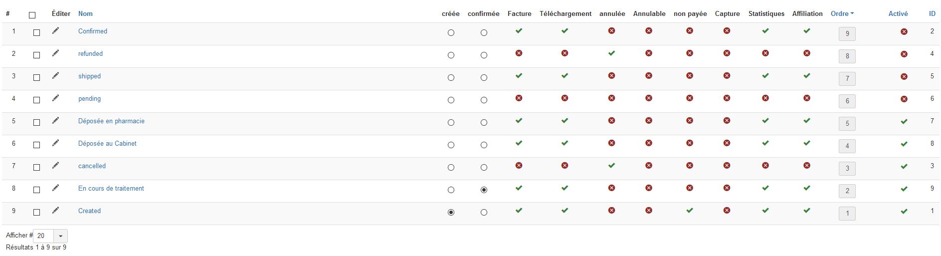 Afin de bien correspondre à notre mode de fonctionnement, je souhaite avoir les statuts de commande: