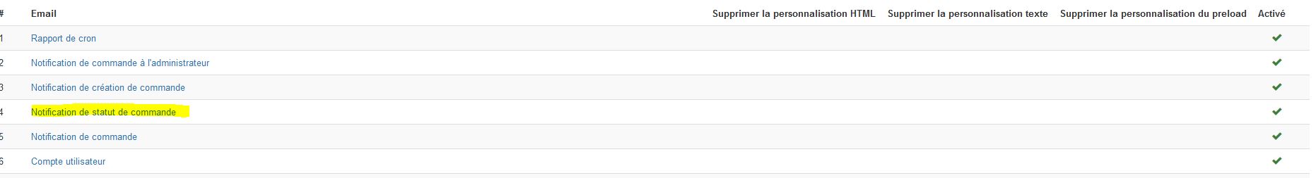 Portant dans le paramétrage des mails, l'option "notification de statut de commande" est bien activée