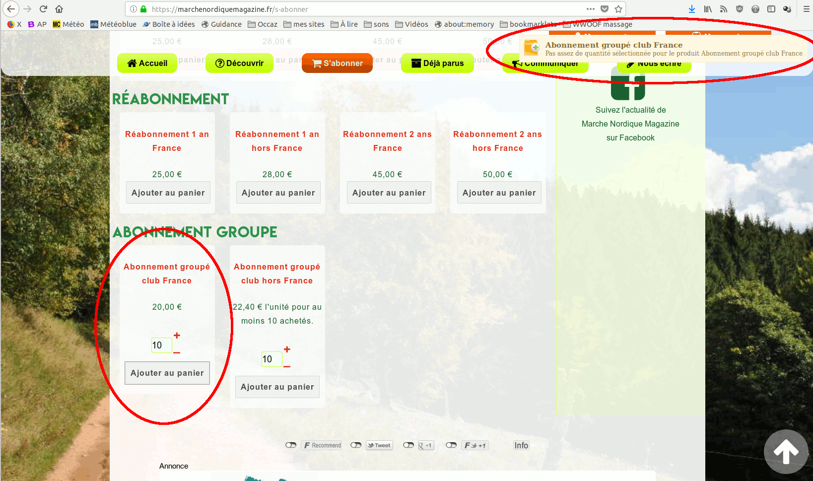 Si je mets « qté par cmd » à 2 et que j'ajoute 2 produits au panier, ça affiche le message d'erreur « pas assez de quantité sélectionnée... ».