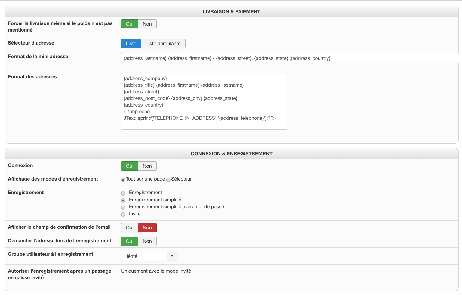 Merci pour votre réponse. J'ai désactivé l'option "passage en caisse obsolète" et maintenant je vois la page. Cependant les adresses de facturation et de livraison de l'utilisateur n'apparaissent pas alors qu'elles le devrait.