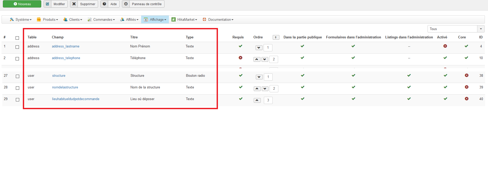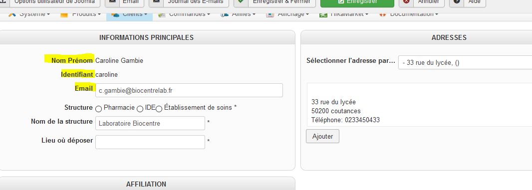 Comment faire apparaitre les champs souligné ci-dessous (informations clients)?