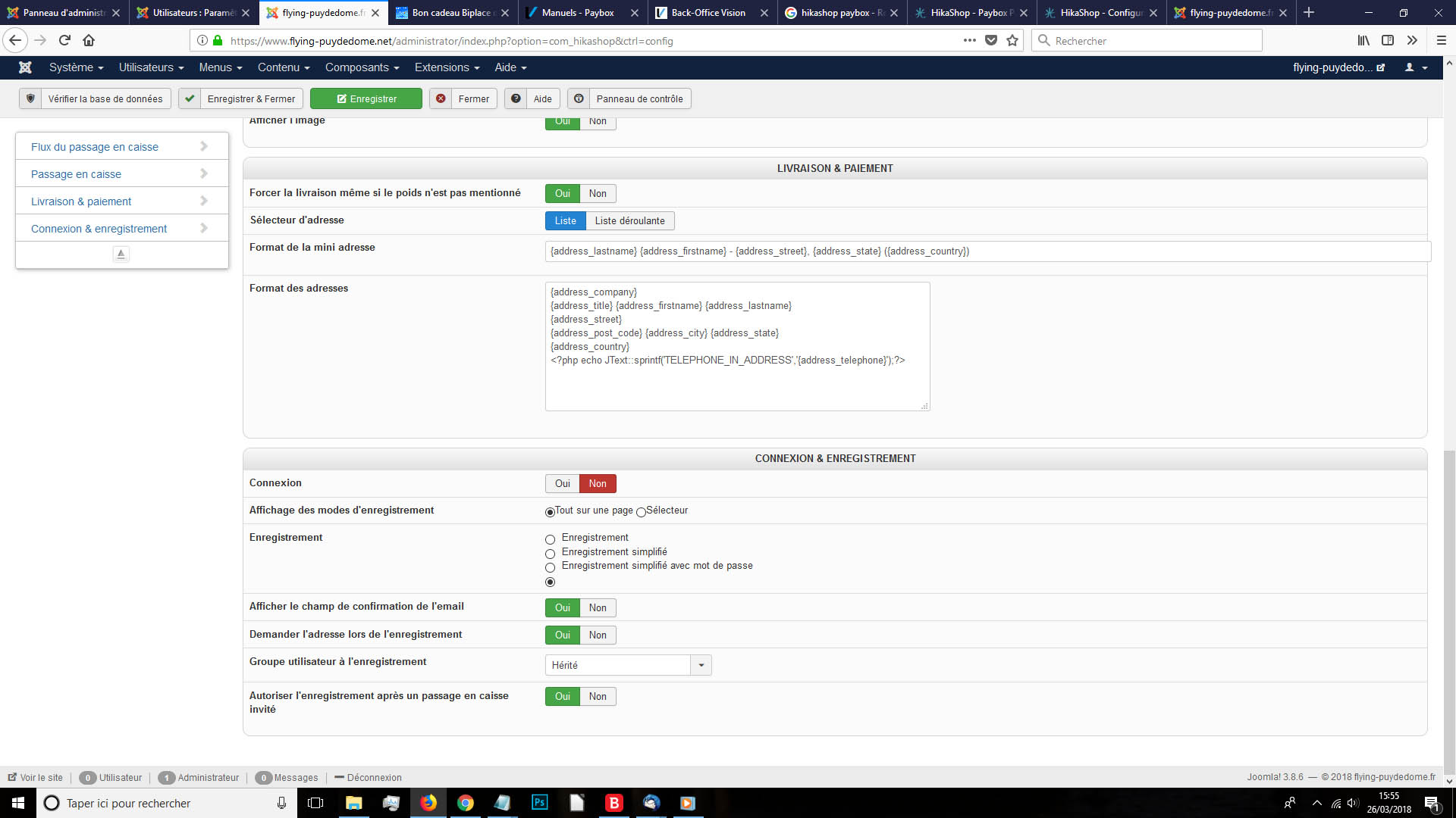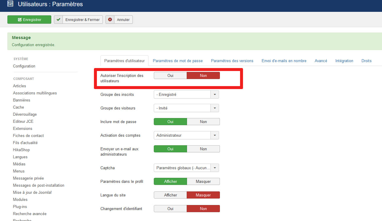 J'ai également mis non pour l'autorisation d'enregistrement comme vous me l'indiquez dans votre message :