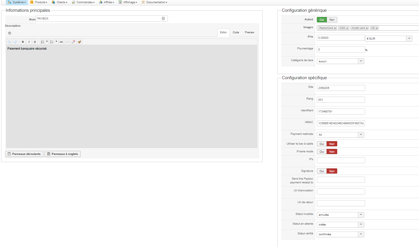 Bonjour je viens de configuré le paiement paybox ...