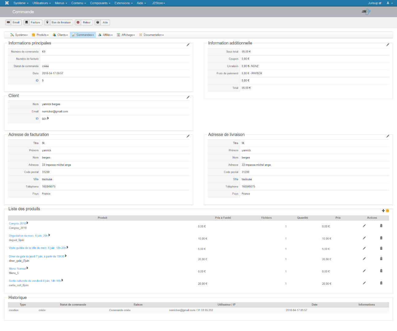 pourtant le statut est bien créer ... mais l'utilisateur recoit une confirmation de commande et de paiement