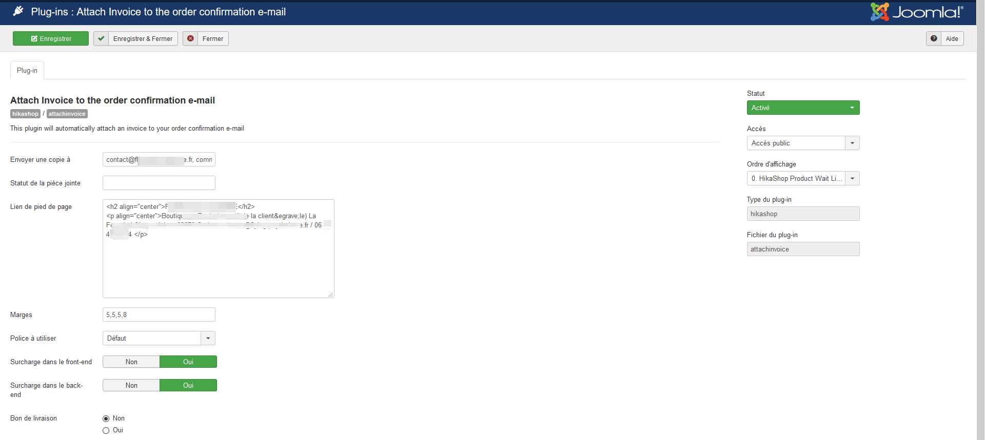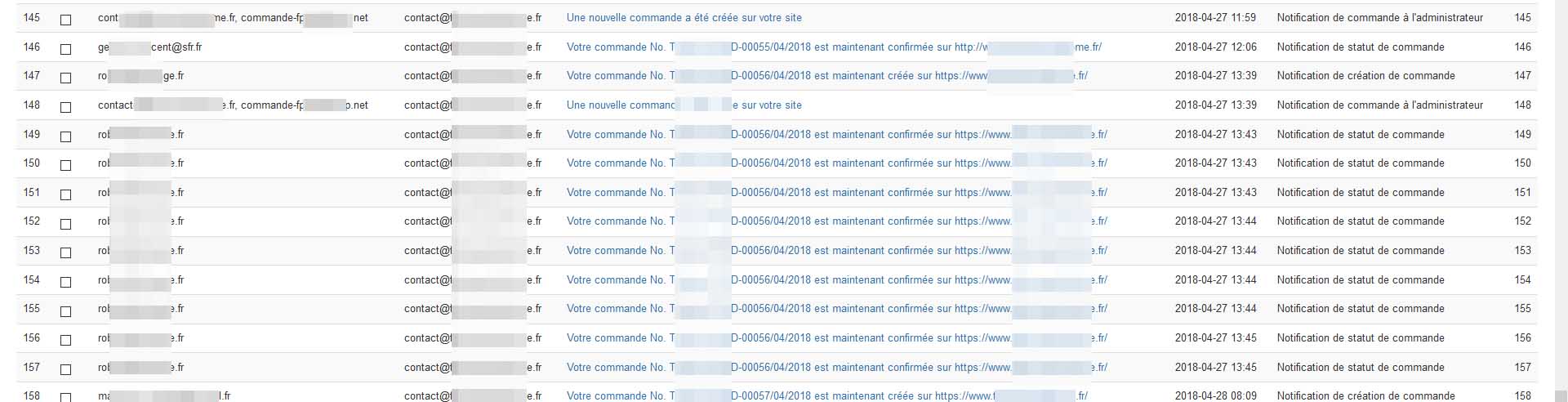 Le soucis c'est que sur deux des emails anormalement reçu le N° de la facture n'était pas le bon mais correspondait au N° de la commande. Ce qui n'est pas le cas avec notre configuration Hikashop ! Sur le troisième mail le N° de commande et de facture sont OK.