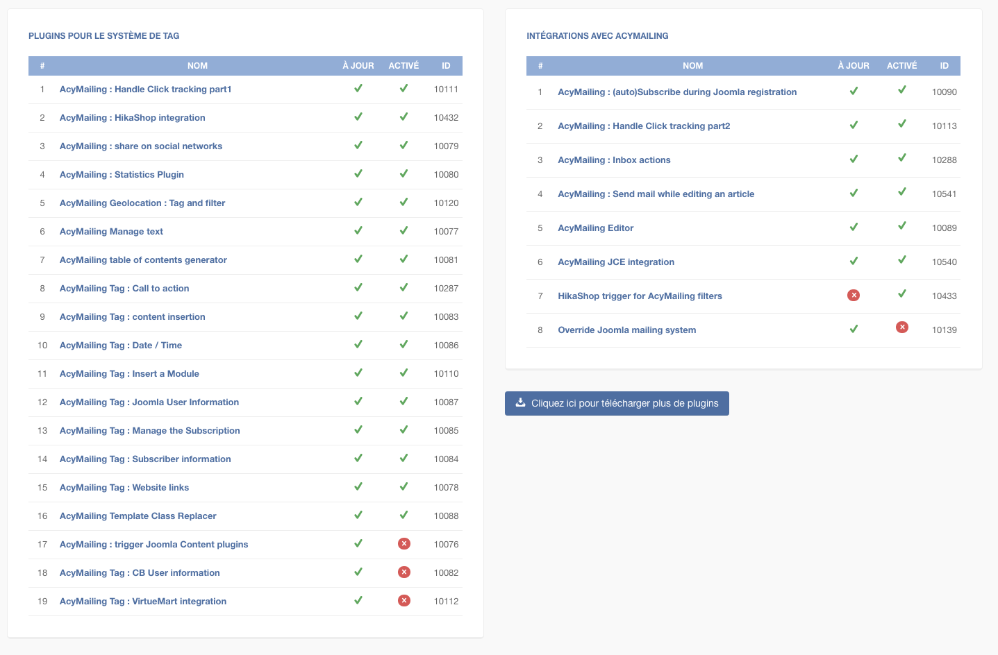 Le plugin "AcyMailing : HikaShop integration" est à jour.